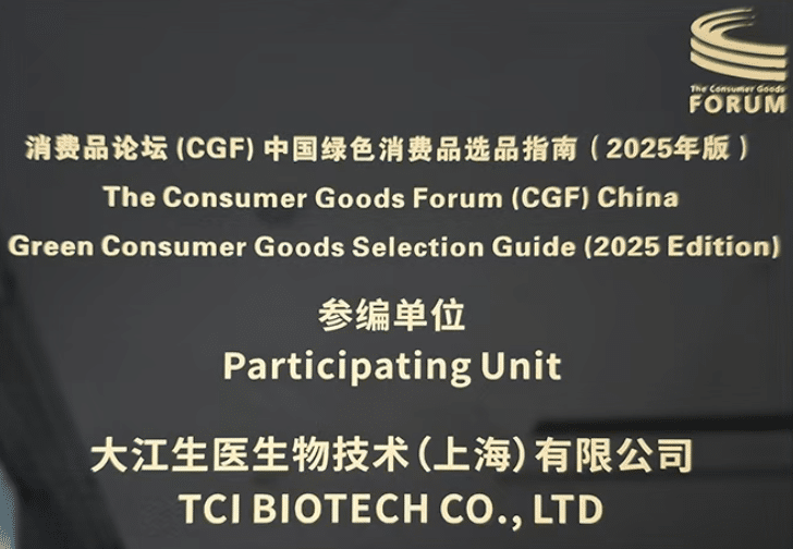 消费品论坛中国日聚焦食品安全、健康、可持续发展和端到端价值链四大核心领域,本届以“引领共塑消费品与零售新未来”为主题,汇聚全球行业领军者共话挑战与机遇。大江生医参与编制的《中国绿色消费品选品指南》,是CGF发起的团体标准指导文件,旨在建立科学透明的绿色消费品评价体系,引导消费者环保选择,响应国家“双碳”目标,而这正是大江生医永续理念的生动实践。